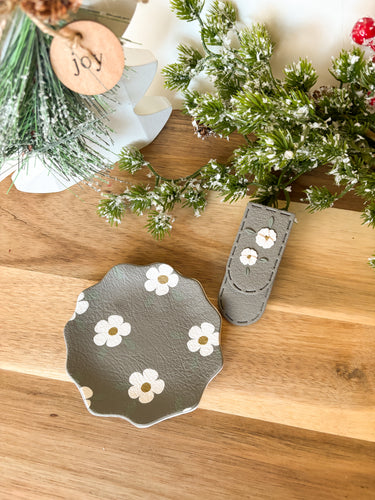 Trinket Tray/Bookmark Duo-Gray Floral